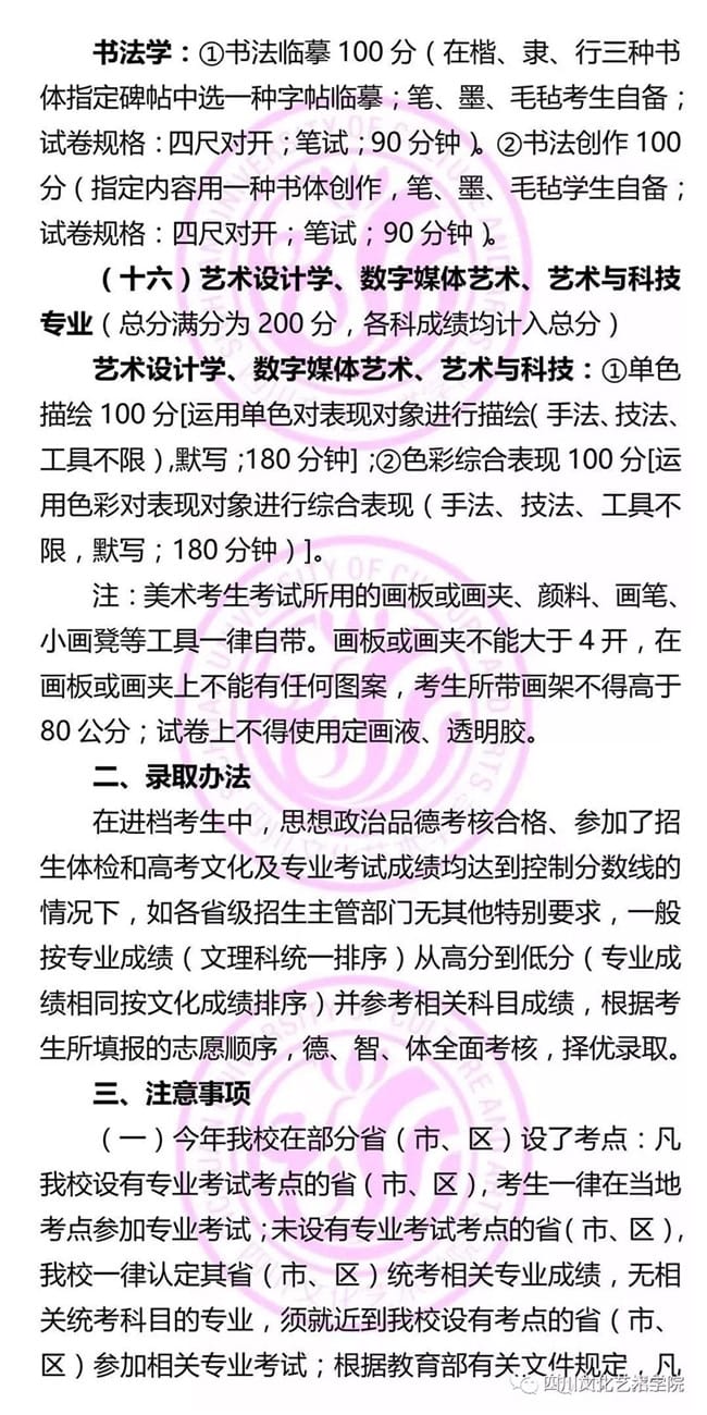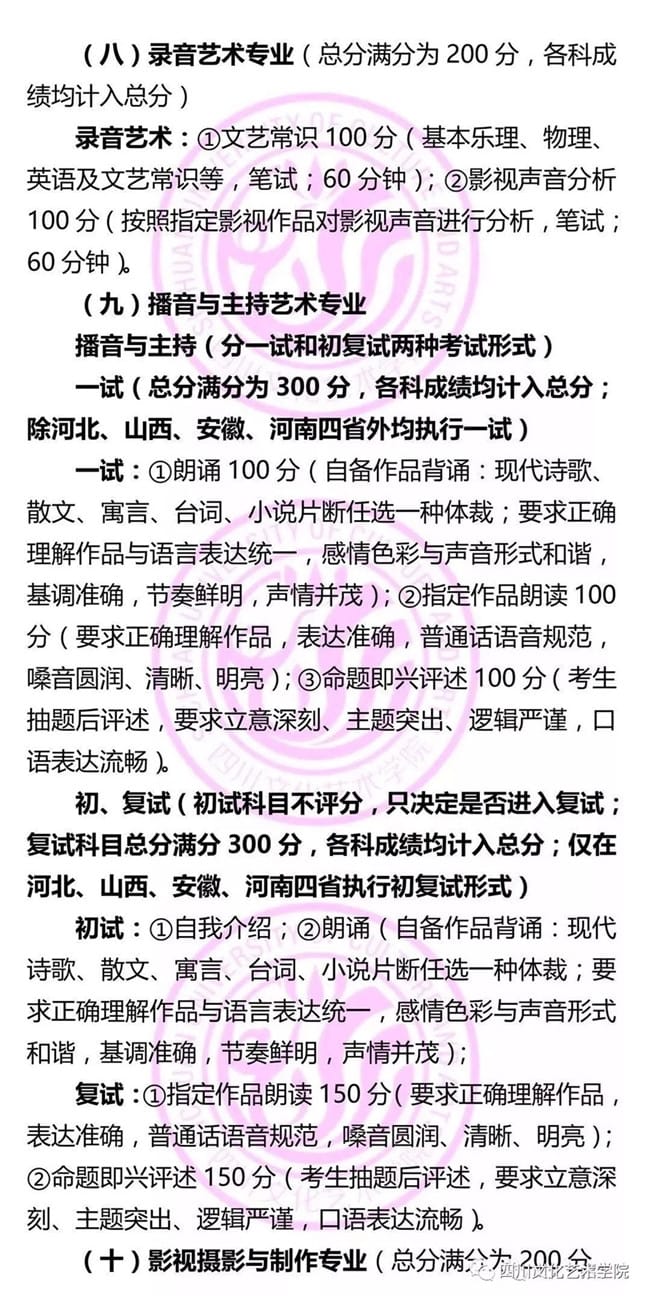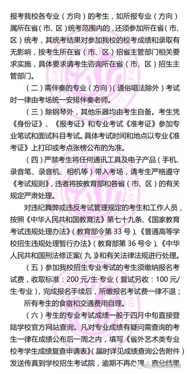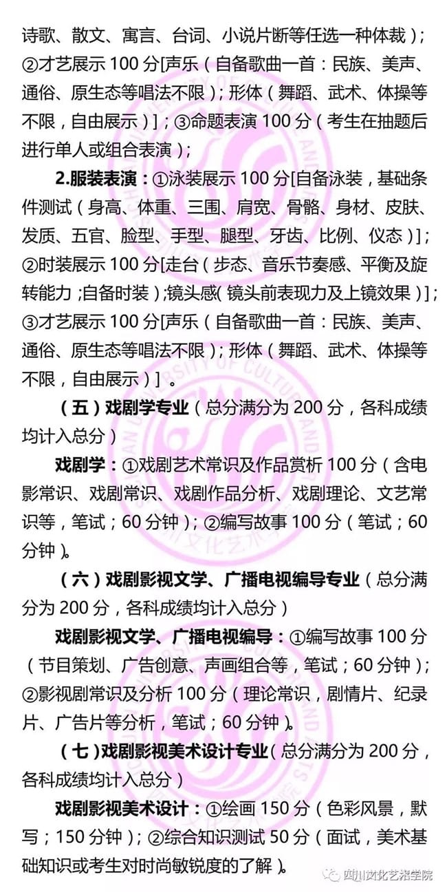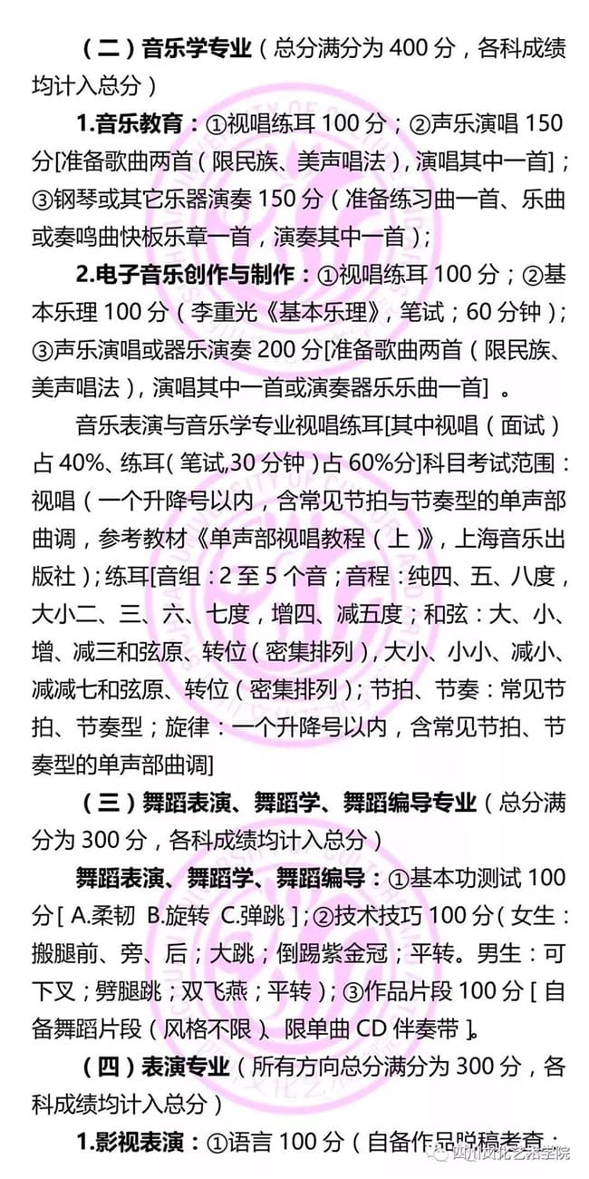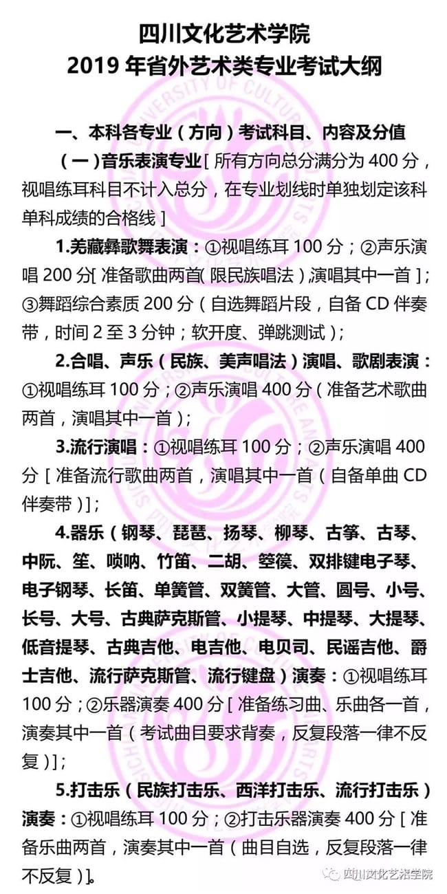 四川文化艺术学院2019年省外艺术类专业考试大纲