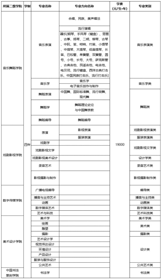 11.其余各艺术本科专业和所有艺术专科专业直接认定各省艺术统考或校级联考成绩